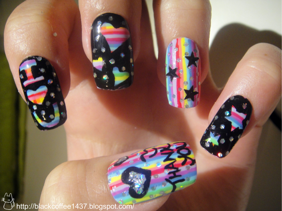 Secondly, I wanna say THANK YOU to all my lovely readers including my friends and family, for your support and lovely comments that encouraged me to continue doing more nail art. Without all of you, I would have given up on this blog long time ago. *teary eyes* And I'm glad some of my work would brighten up your day =D